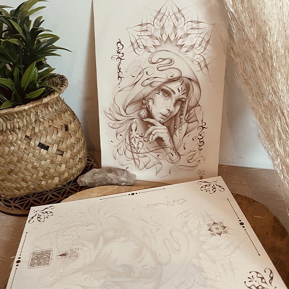 Je puise mon inspiration dans l’ornemental et le spirituel pour créer des œuvres originales et symboliques dans le domaine du tatouage.